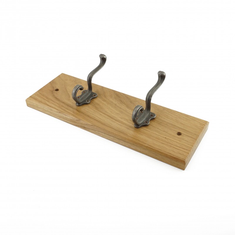 Our 2 Coat Hook board has been handcrafted in the UK with high quality oak and features two cast iron hooks. This coat hook is the perfect addition to any space that requires additional, wall hung storage.