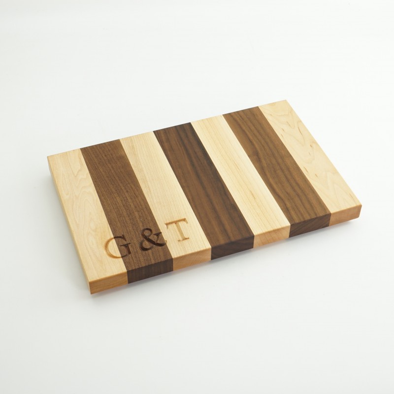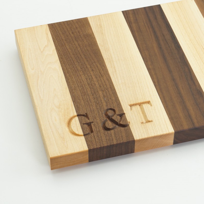 Our Maple & Walnut gin and tonic chopping board beautifully combines these two wooden finishes for a distinctive look.