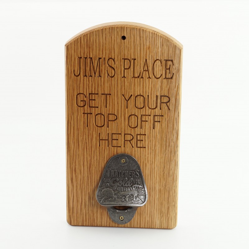 This wall mounted bottle cap opener board is made from oak for a stylish, yet practical finish. This quirky board will bring a smile to the recipient's face, it can be engraved with any name or message that you wish.
